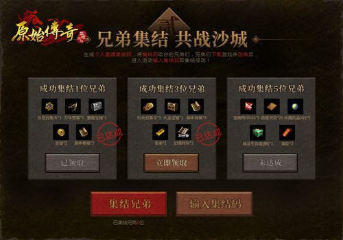 在活动页面中,可生成邀请集结码,将集结码发送给你的兄弟们,兄弟们下载游戏并创角后,从游戏内点击活动狂欢按钮后,输入兄弟的集结码,即可集结成功。只需要集结5位兄弟,即可完美领取价值200元的极品奖励!赶快行动哦!