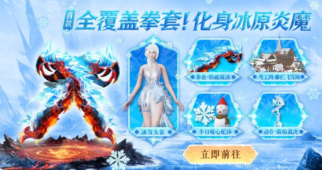 【奇缘探秘·焰破凝冰】活动即将上线,消耗婴玉即可获取抽奖券,抽取全新“全覆盖”拳套皮肤、冰雪主题女装、“升龙”动作等好物,还有机会直接暴击清空奖池!