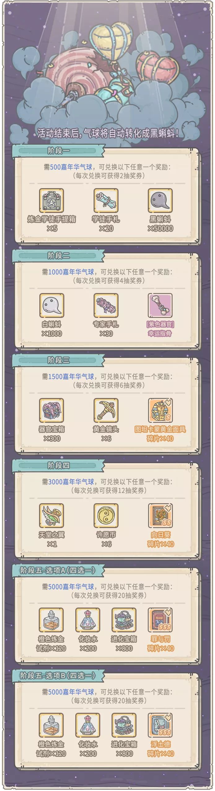 1、活动期间,可消耗活动货币“嘉年华气球”,兑换奖励