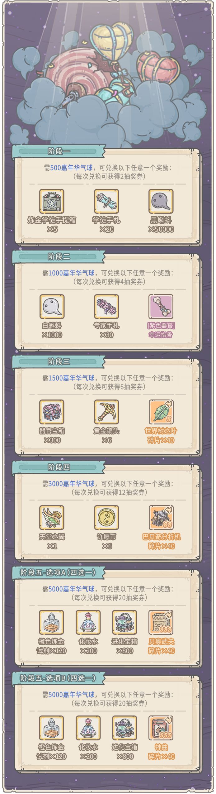 1、活动期间,可消耗活动货币“嘉年华气球”,兑换奖励