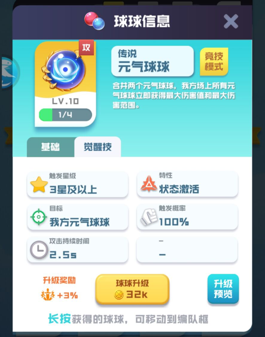 有了适配的阵容,我们还需要关注一下元气球球的觉醒技能。