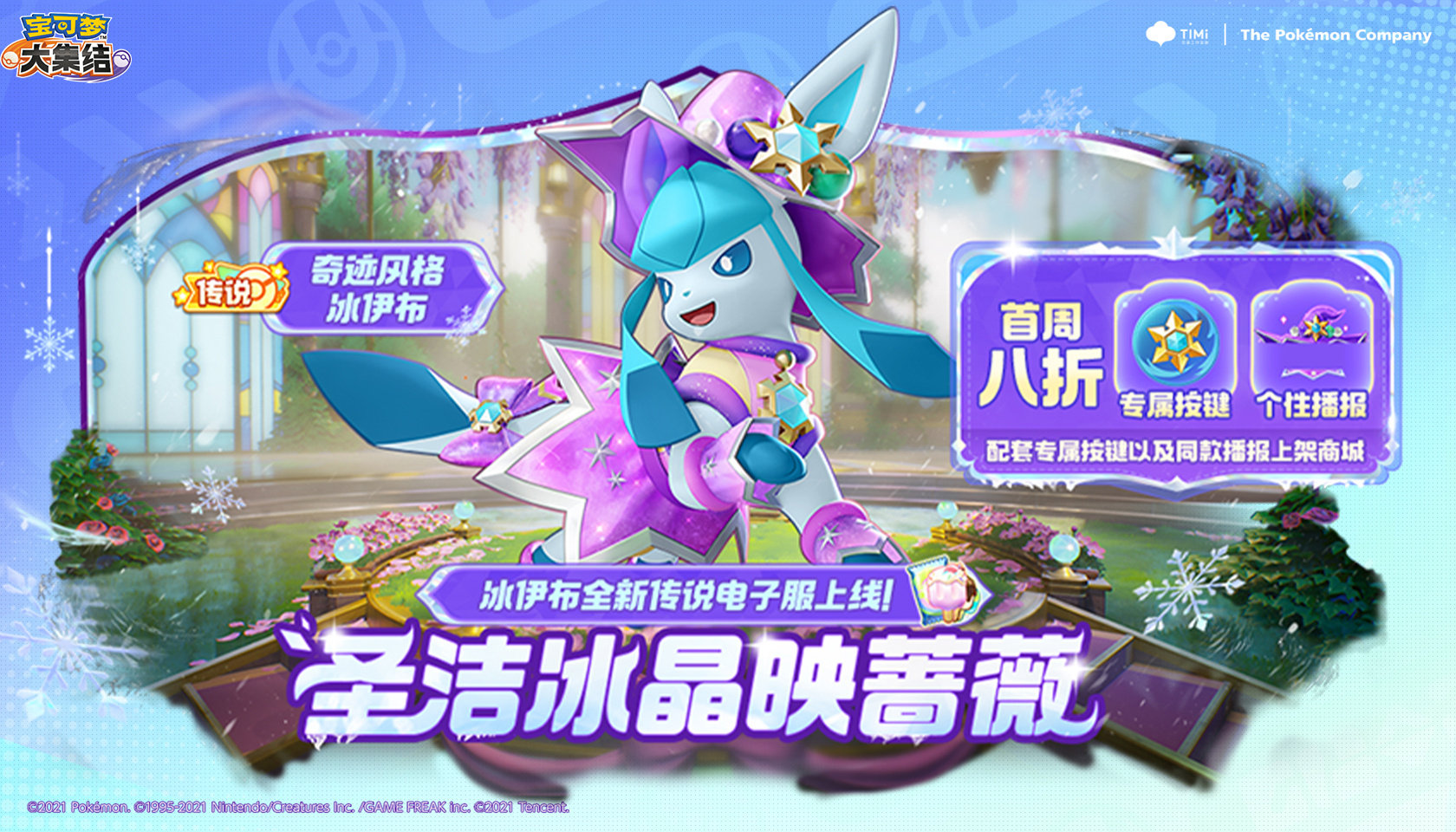 10月3日10点起,冰伊布全新传说电子服奇迹风格冰伊布上线!配套专属按键以及同款播报上架商城!首周八折~