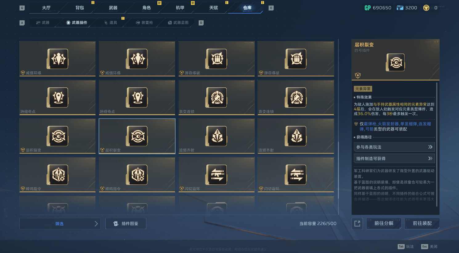 值得关注的是,《逆战:未来》对玩家的装备获取设置了相当宽松的环境。除副本挑战外,玩家还可通过赛季任务、活动参与等多种途径获得枪械及近战武器或插件。游戏中的武器插件系统设计颇具深度,每把武器可搭载四个功能各异的插件,这些插件不仅能通过常规玩法获取,更重要的是它们并非单纯的数值提升,而是通过改变武器特性、增添特殊效果等方式,使得每一把武器都有多种构筑搭配方案,为玩家构建个性化的战斗风格提供可能。