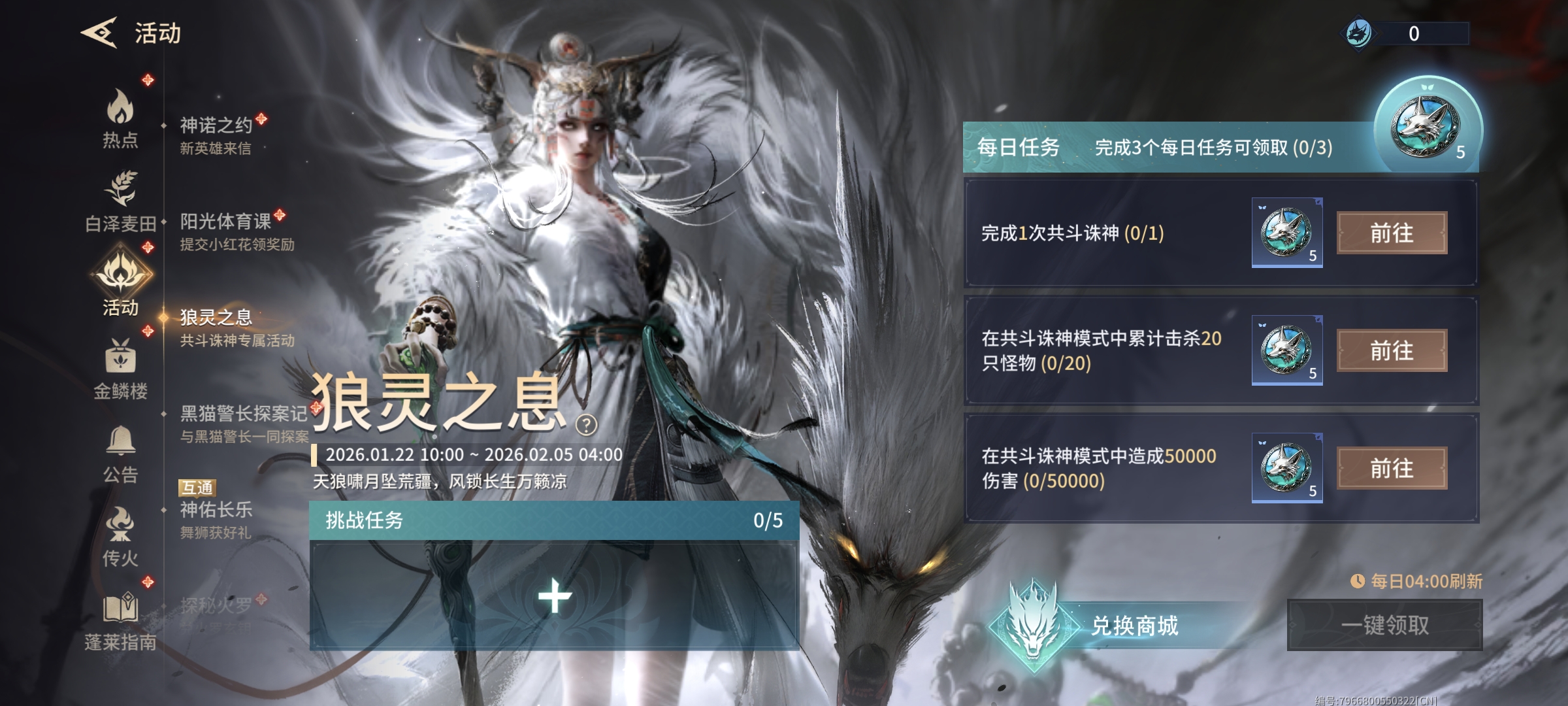 玩家参与共斗诛神模式完成活动任务,获得道具【风吼币】,可兑换【神佑宝箱任选礼】、【天枢极品魂玉随机礼】、【极品淬玉髓】等奖励。