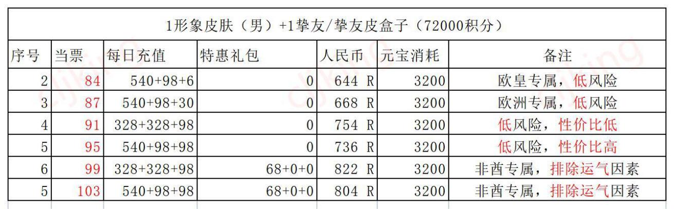 ⑷目标1形象皮肤(男)+1挚友/挚友皮盒子(72000积分)