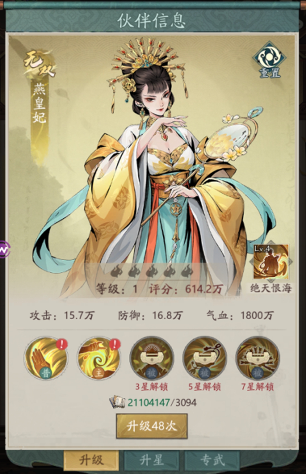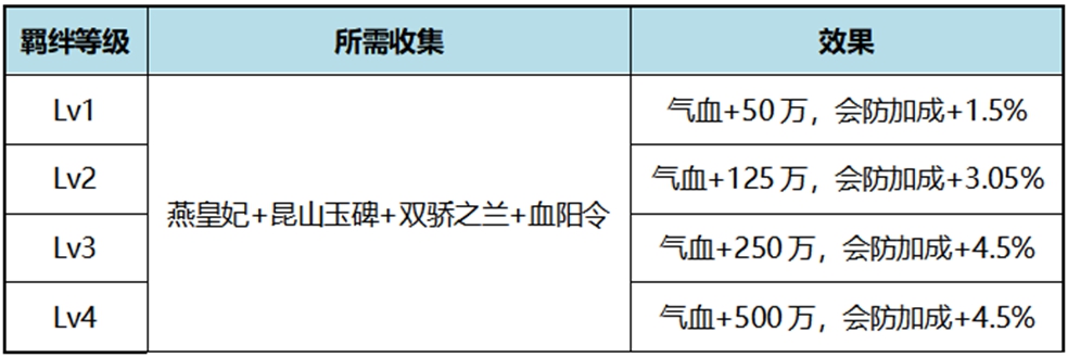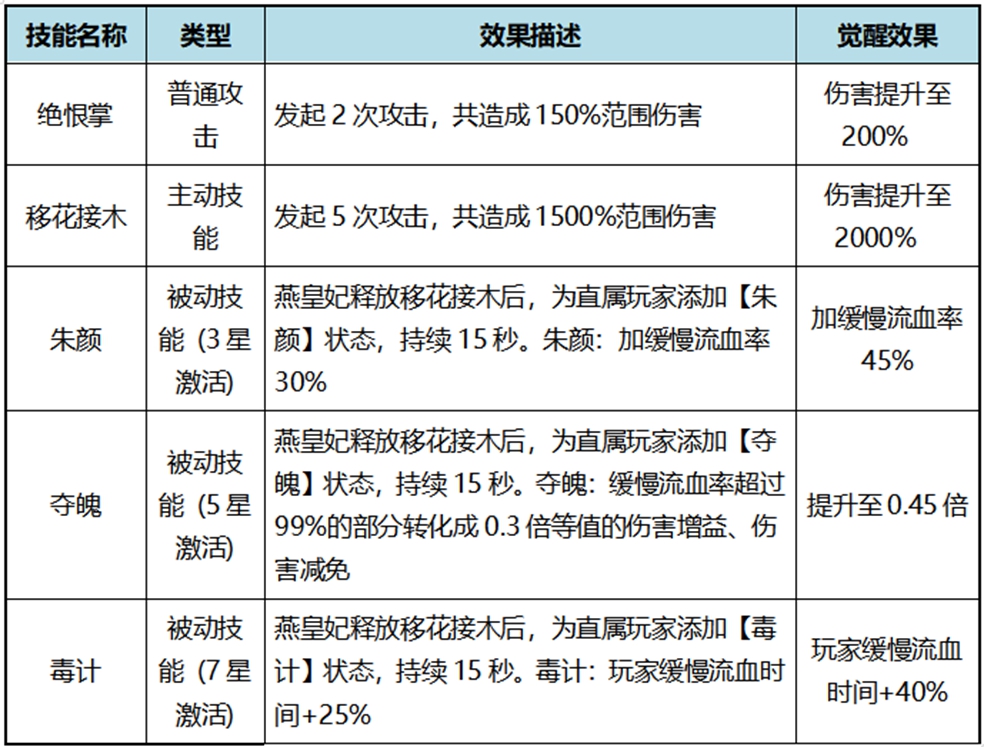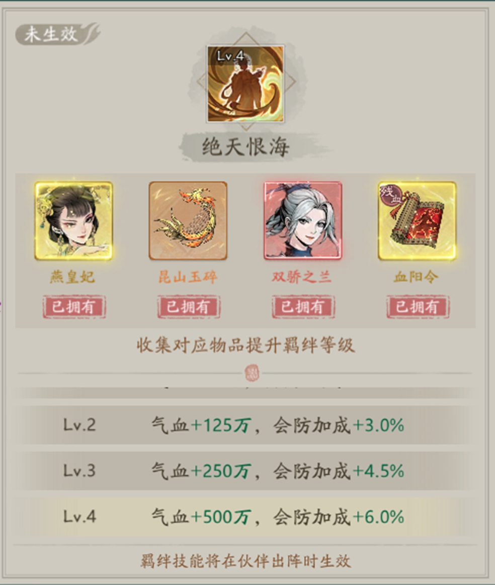 ●专属效果:朱颜、夺魄、毒计状态持续时间+50%