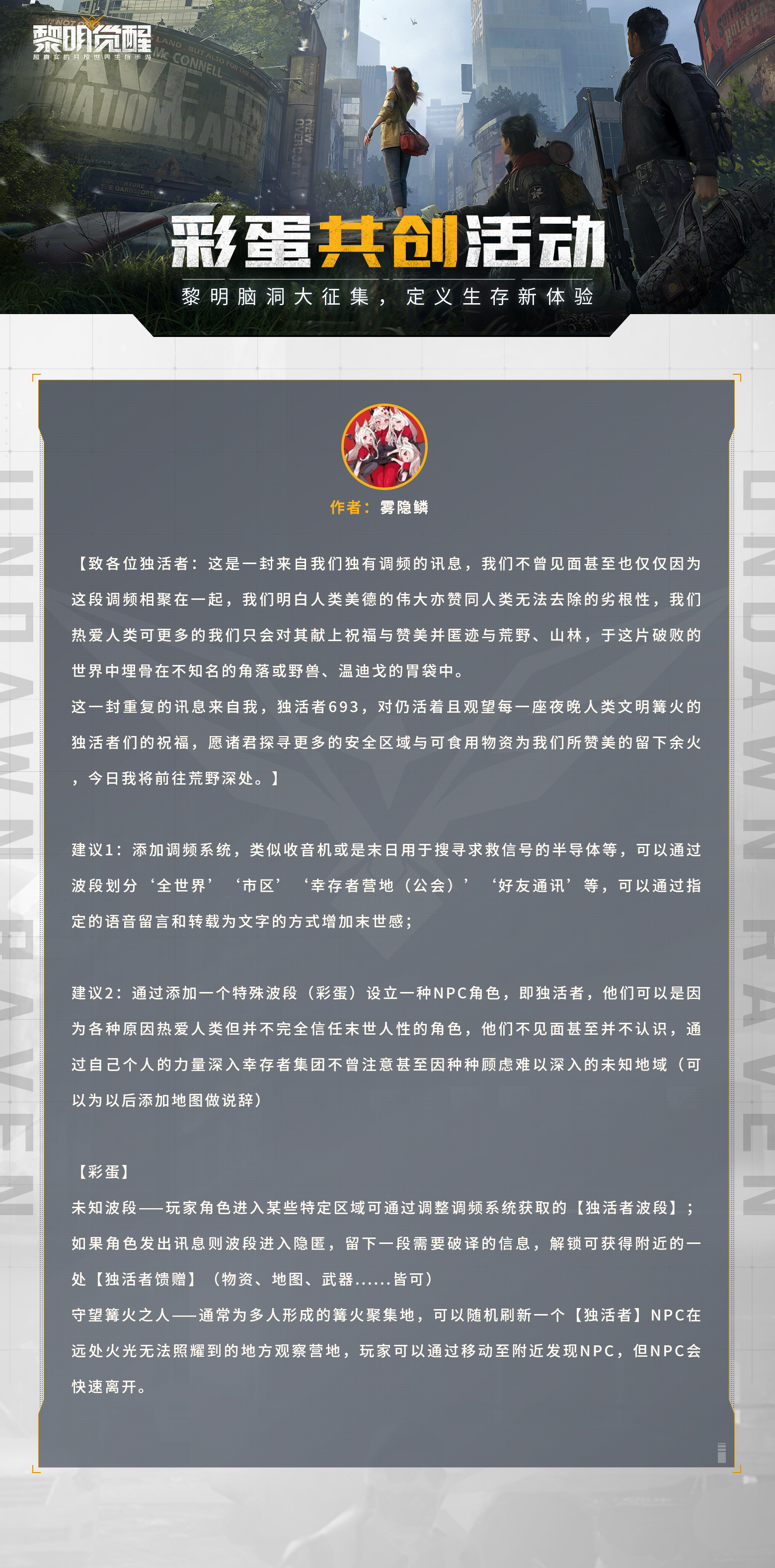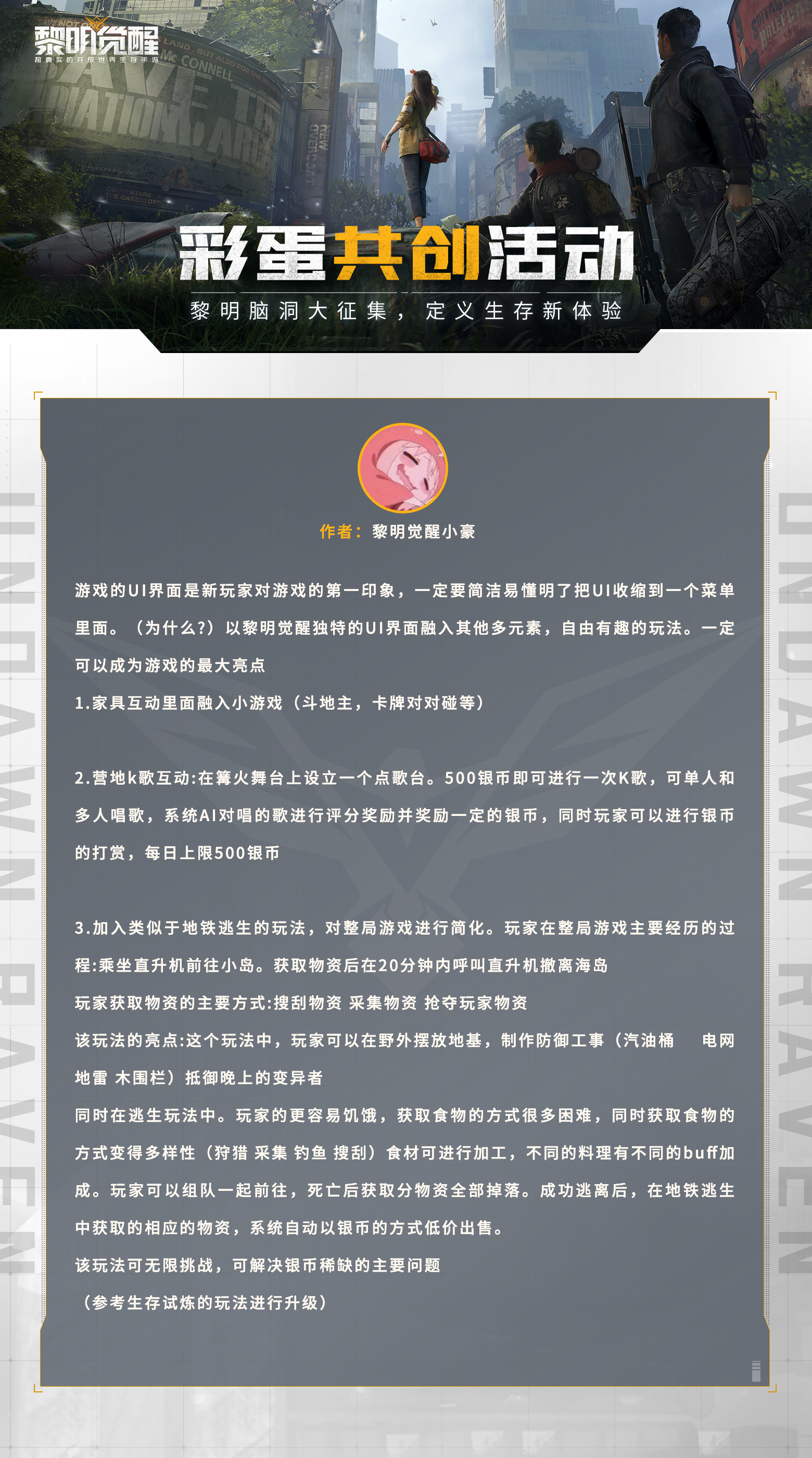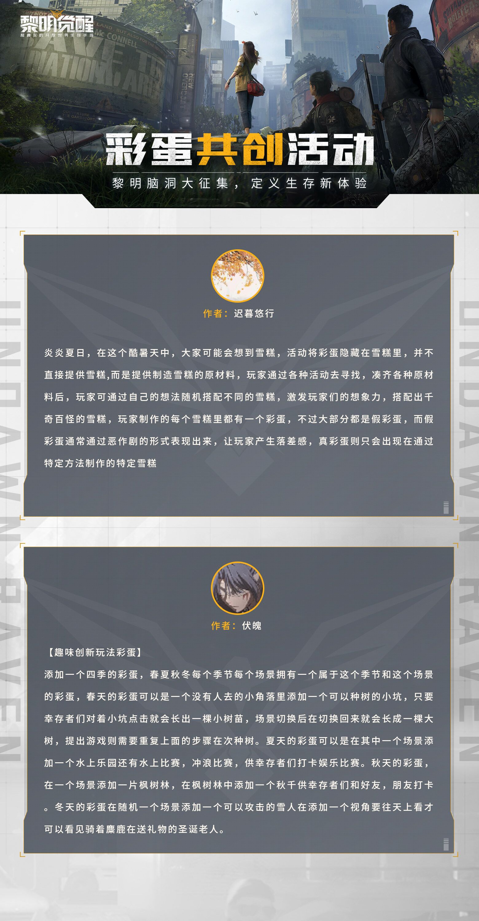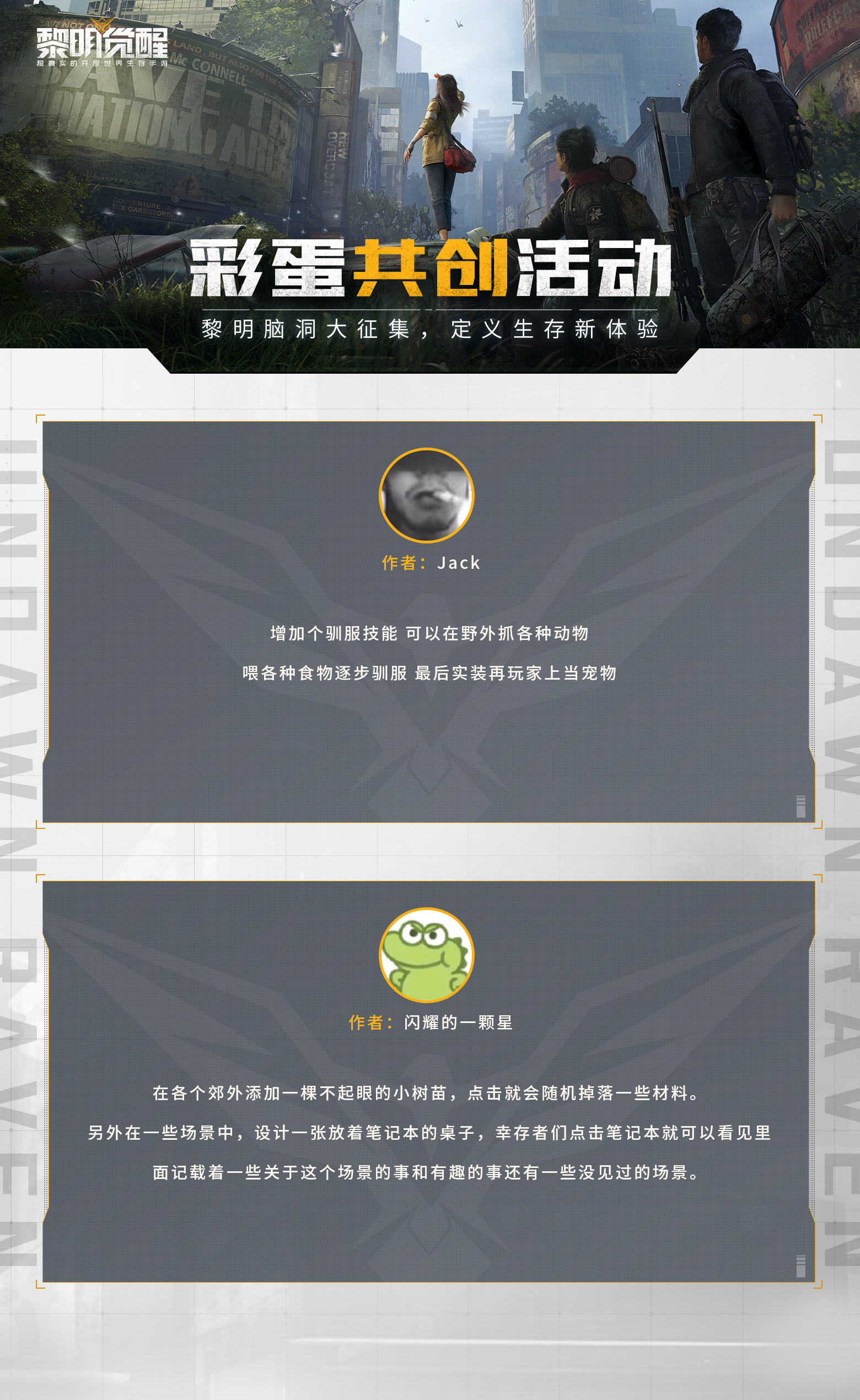 《黎明觉醒》创想计划的初选名单