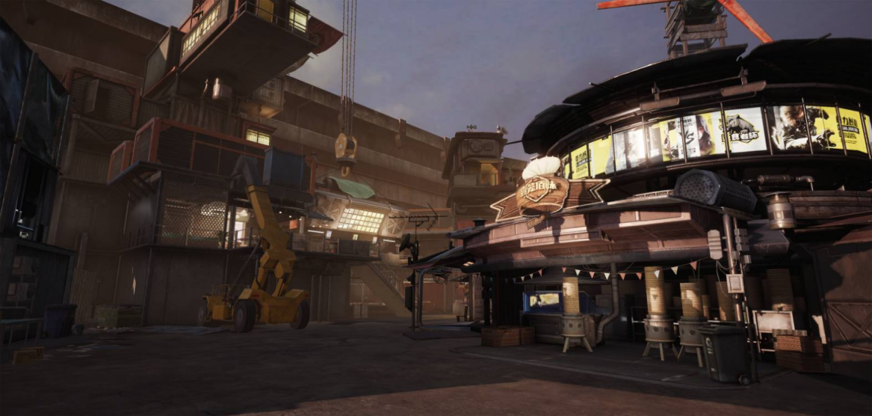 从高处眺望这一处巨大港口,堆积着杂乱不堪的集装箱。直到走近达到人们的生活区,大量旧时代废土风格的建筑逐一呈现在我们的眼前。这里虽然没有繁华现代都市的整洁,但错综复杂的铁皮房与熙熙攘攘的人们,使黑金港充满生气与热闹。