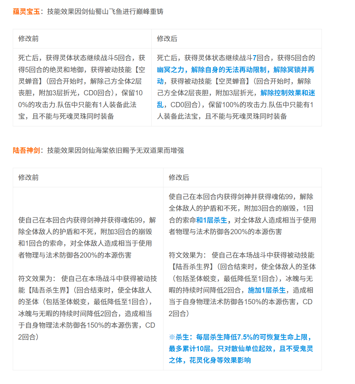 本期技能效果调整已于12月11日发布,敬请剑仙们关注公告。