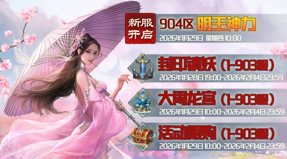 新服开启:1月29日,周四上午10点开新区904:明王神力