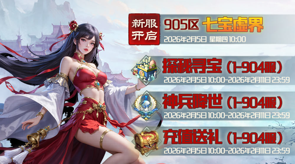 新服开启:2月5日,周四上午10点开新区905:七宝虚界