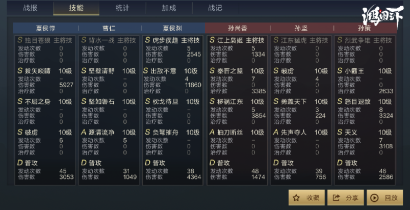 站位:主将-夏侯渊(6)副将-夏侯惇(2)副将-曹仁(3)