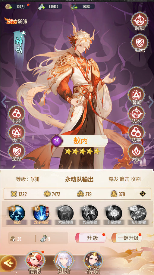 升级与突破:消耗资源提升神将等级与突破阶段,直接提升基础属性,是战力成长的基石。