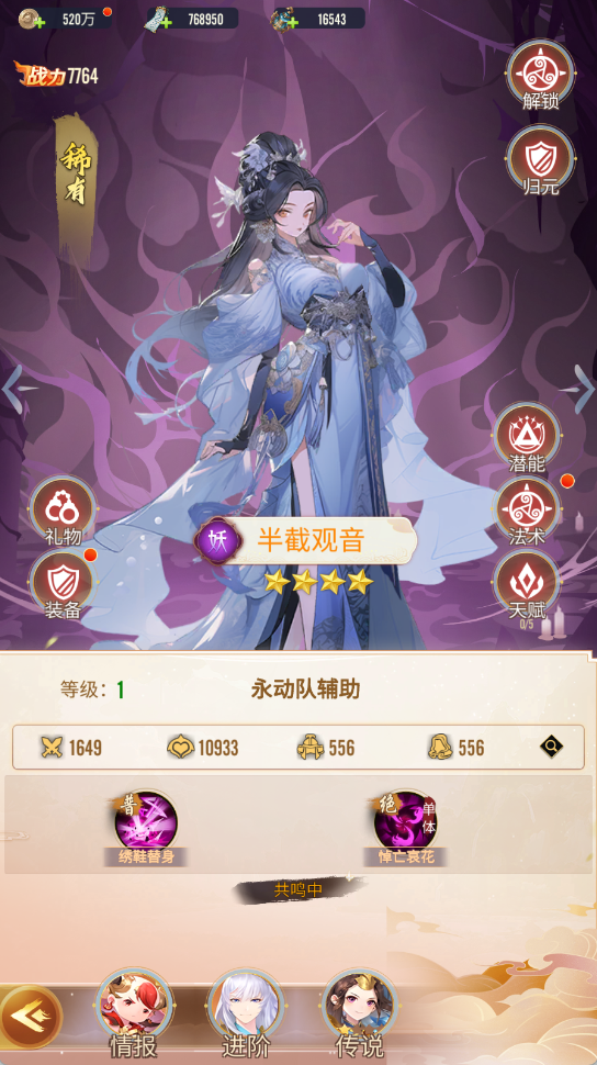 • 妖:天地间精怪妖族汇聚,以减防Debuff和多段控场为核心,代表神将为半截观音,可削弱敌方属性、限制敌方输出节奏。