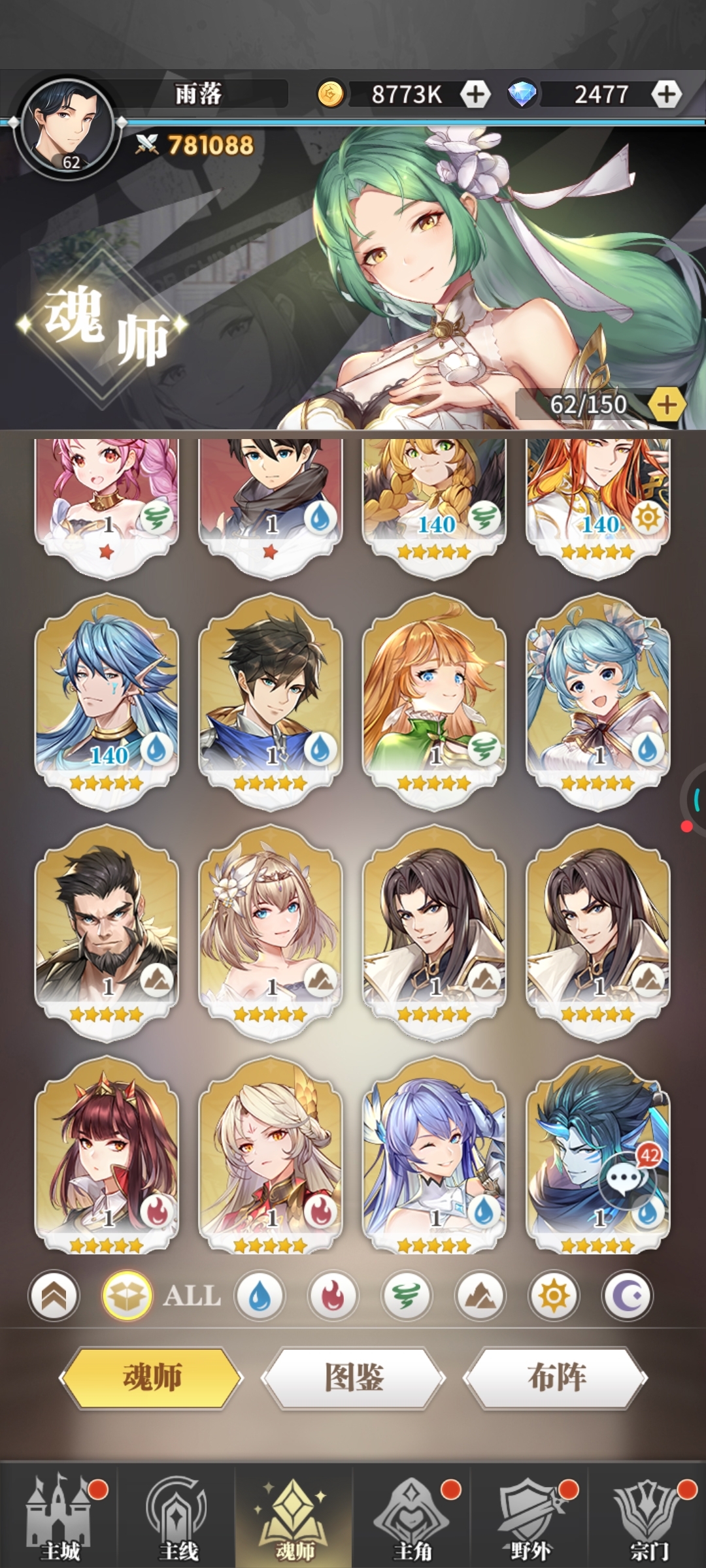 就离谱大号起步挺好,快速升星到三星就开始乱入,抽一个光系一个千仞雪,一堆乱七八糟的,升都升不了星,卡了两星期了,小号就稳的一批,一天三个朱竹清,现在小号战力比大号都多