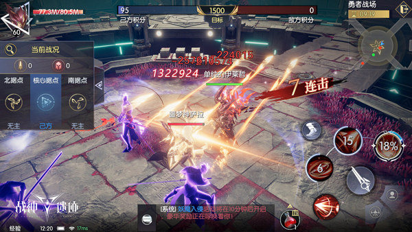 【勇者战场】是以组队形式参与的占点型多人竞技玩法,点击主界面的【玩法】-【竞技】-【勇者战场】按钮即可进入。誓约者需要组建一支6人队伍,与另一支队伍抢夺目标点、决一死战并取得最终胜利。
