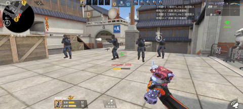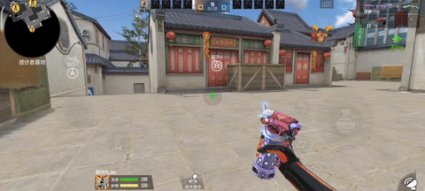 带入对局中后的表现也非常亮眼,两侧“CF”字样的金色贴图更加的显眼,闪烁着明亮的金色光芒,拉环位置做成了类似于赛博科技风格的机器士兵头部的装饰,在其眼部以及头顶的独角一直散发的蓝色微光,非常具有辨识性。以下即为该武器对局内效果。