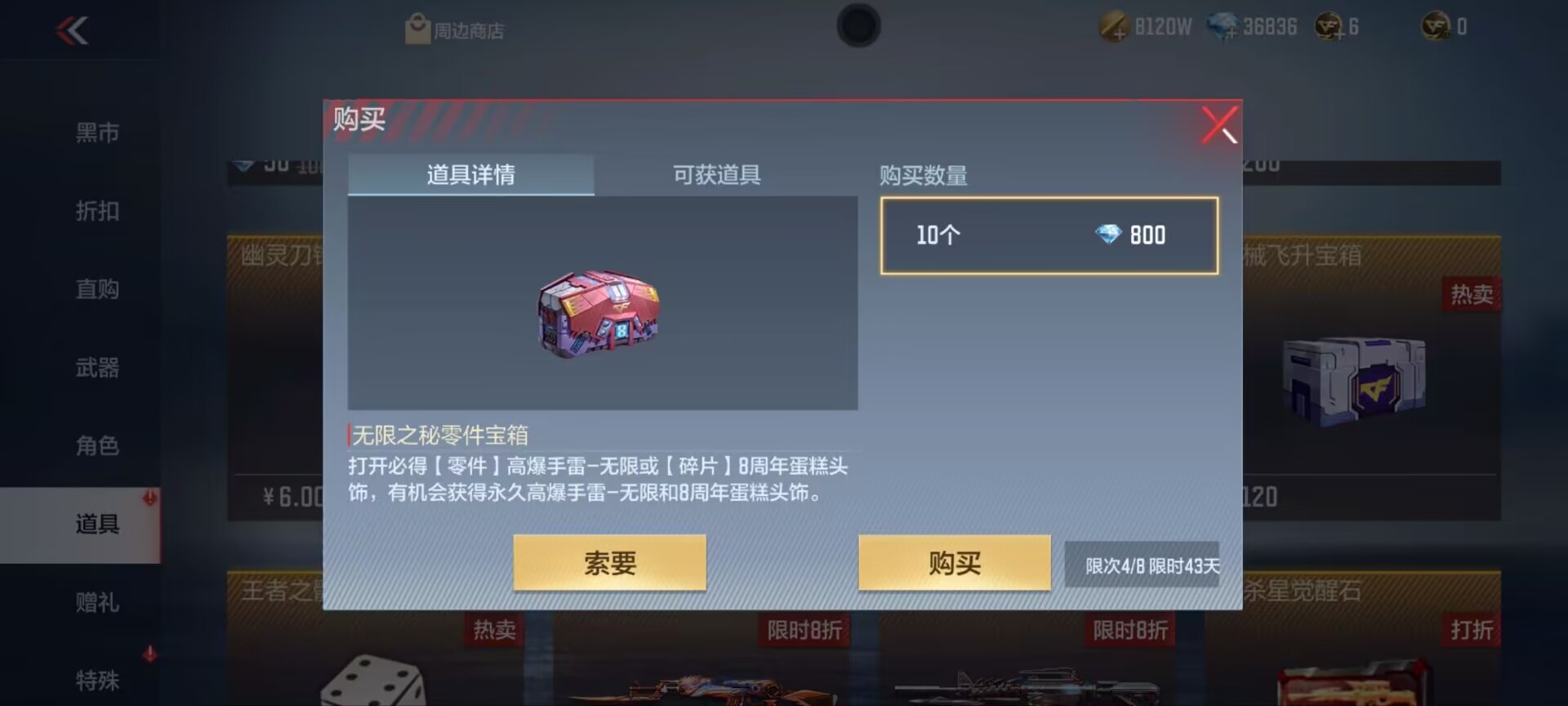 目前该宝箱的价格以限时8折的价格上架于商城中,价格非常便宜,加上现在各种活动都送无限之秘零件宝箱,我们可以通过非常低廉的价格将其拿下,哪怕像小编一样直接购买宝箱,也仅需两千多钻石即可拿下,非常划算!