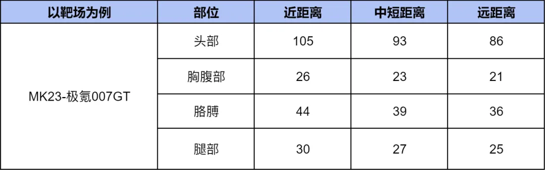 以靶场为例,伤害数据如下。MK23-极氪007GT整体伤害表现不错,特别加上是521发每分钟的高射速,使得这款副武器秒度表现极佳。对于一些缺少强势副武器的玩家来说,这款MK23-极氪007GT可以说是雪中送炭,在实战中也算一个非常不错的选择。