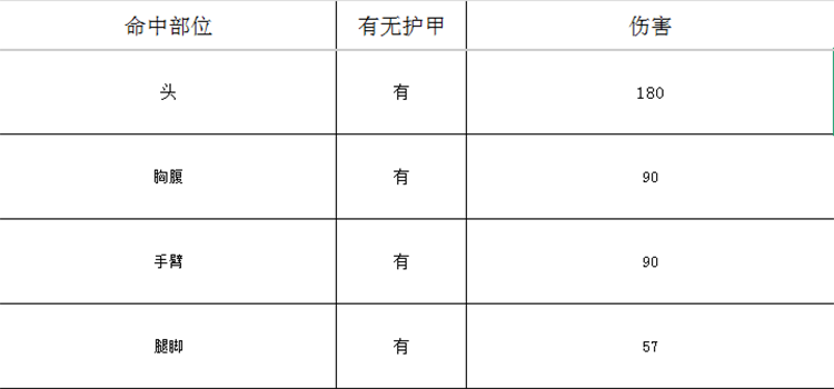 而在实战伤害方面,由于基本都装备防弹衣和防弹头盔,因此只测试有甲伤害,具体具体如上图。