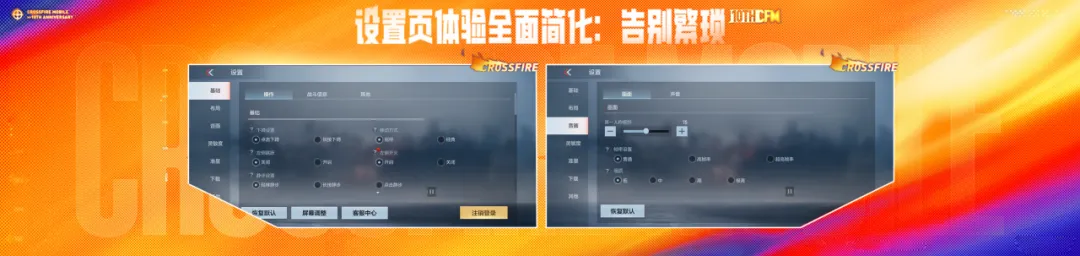 明年,设置页也将迎来一次全面升级。我们会在充分尊重CFer们操作习惯的前提下,梳理目前繁多的设置项,并重新分类。例如大家游玩时高频选择的布局、灵敏度和准星等设置项将被提升到首页,让调整时更加得心应手。这次改造将会是一次精准的“瘦身”与“重塑”。大家可以期待一个更轻快的界面,和更高效的操作流程!