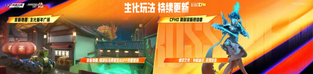 在春节版本,会推出全新生化地图—生化新年广场。我们期待人类与生化幽灵在这张经典爆破地图上爆发出新的火花!此外,也将上线生化福袋玩法,人类拾取后将获得短时间的强力变身;终极生化和生化追击也将分别迎来新BUFF的加入和BUFF池扩展。不仅如此!明年我们将上线全新终结者—噬空之灵,使用技能后可以遁入虚空,期间不会受到任何伤害,更利于突破人类阵营的防守。