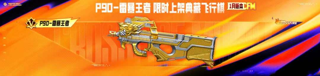 首先是典藏飞行棋重磅更新,P90-雷暴王者来了,这是典藏飞行棋的第四把武器,独特的王者金色外观与强力的作战属性,希望为大家带来更好的体验。