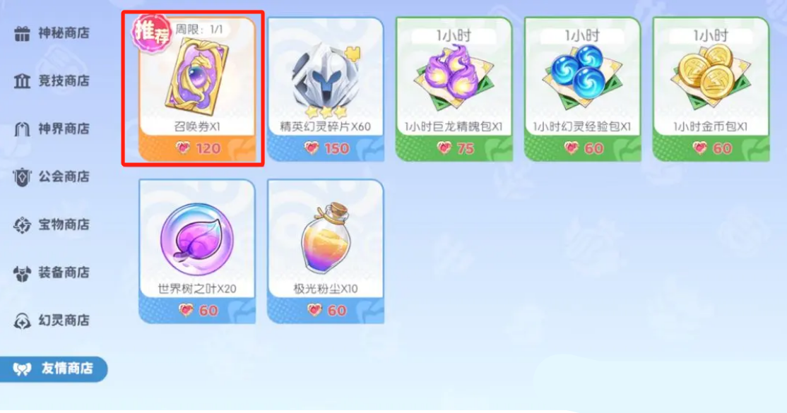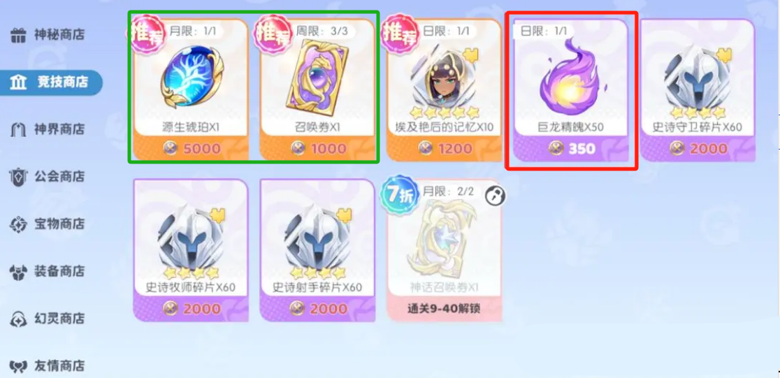 推荐优先兑换:巨龙精魄、源生琥珀,召唤券前期可兑换