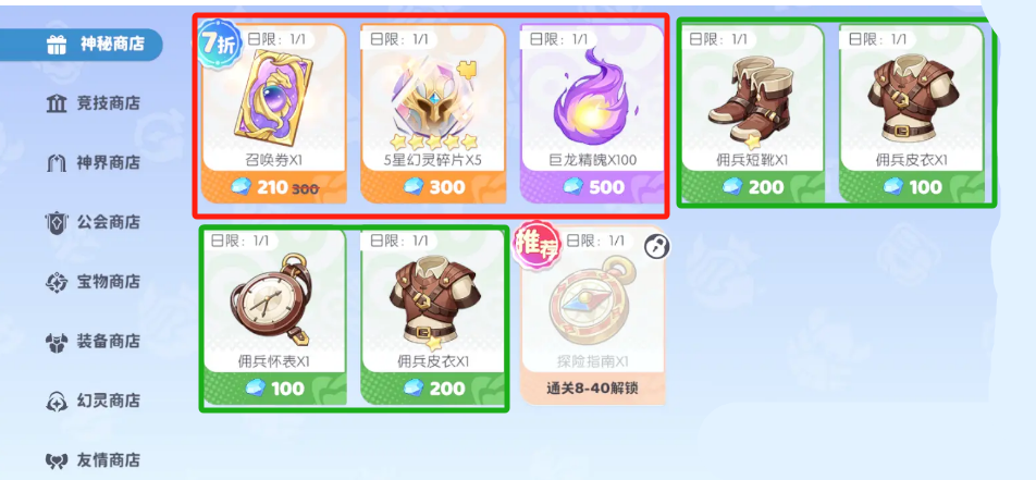 该商店在游戏初期较为鸡肋,到了中后期主要用来置换神器,根据需求自行安排