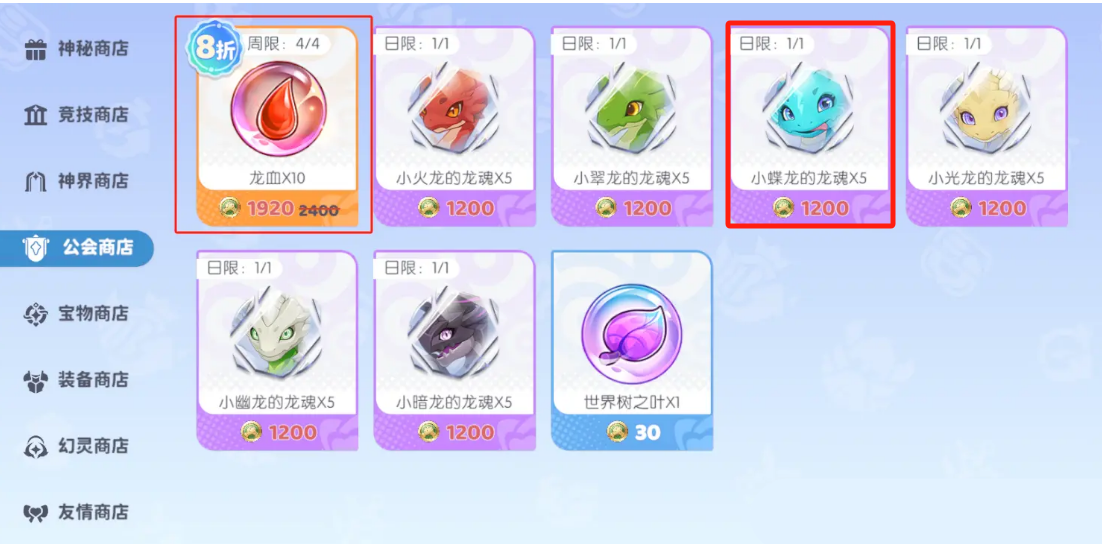 两个兑换方式:0氪没买小蝶龙的,先换个小蝶龙,买了小蝶龙的,梭哈龙血;世界树之叶急需的时候可以稍微补一下