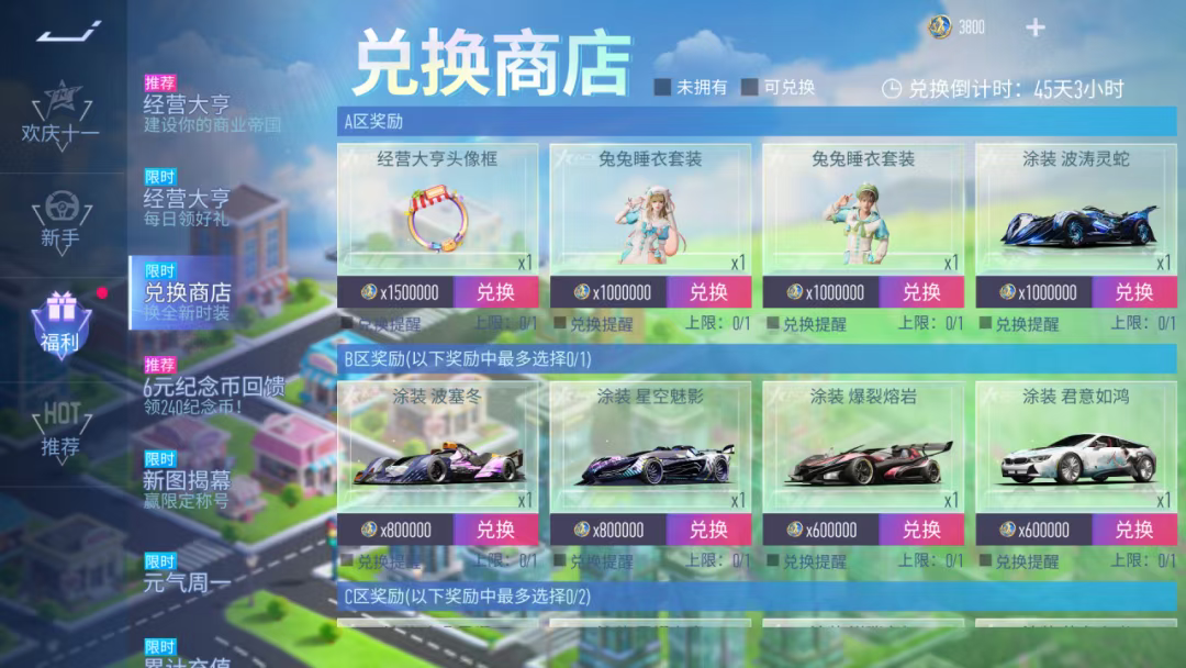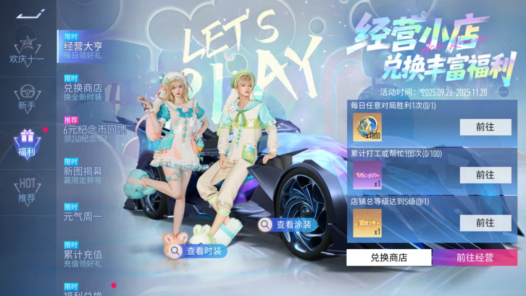 一分耕耘一分收获,经营店铺获得的经营币可以在兑换商店中换取精品时装、多款涂装、传说蓝图自选包、王牌补给券等丰厚奖励!