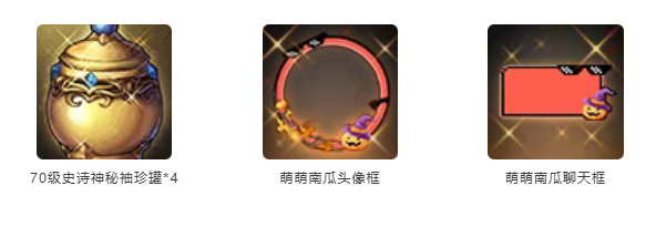 在10月22日-11月19日,“斩夜女神每周好礼”开启,玩家每周登录可领取不同奖励,奖励包含70级史诗神秘袖珍罐(账号绑定)(30天)*4及矛盾的结晶体(账号绑定)、深渊:暴走研究所通行证(账号绑定)、 斯卡迪的印章(账号绑定)、萌萌南瓜头像框、萌萌南瓜聊天框奖励。