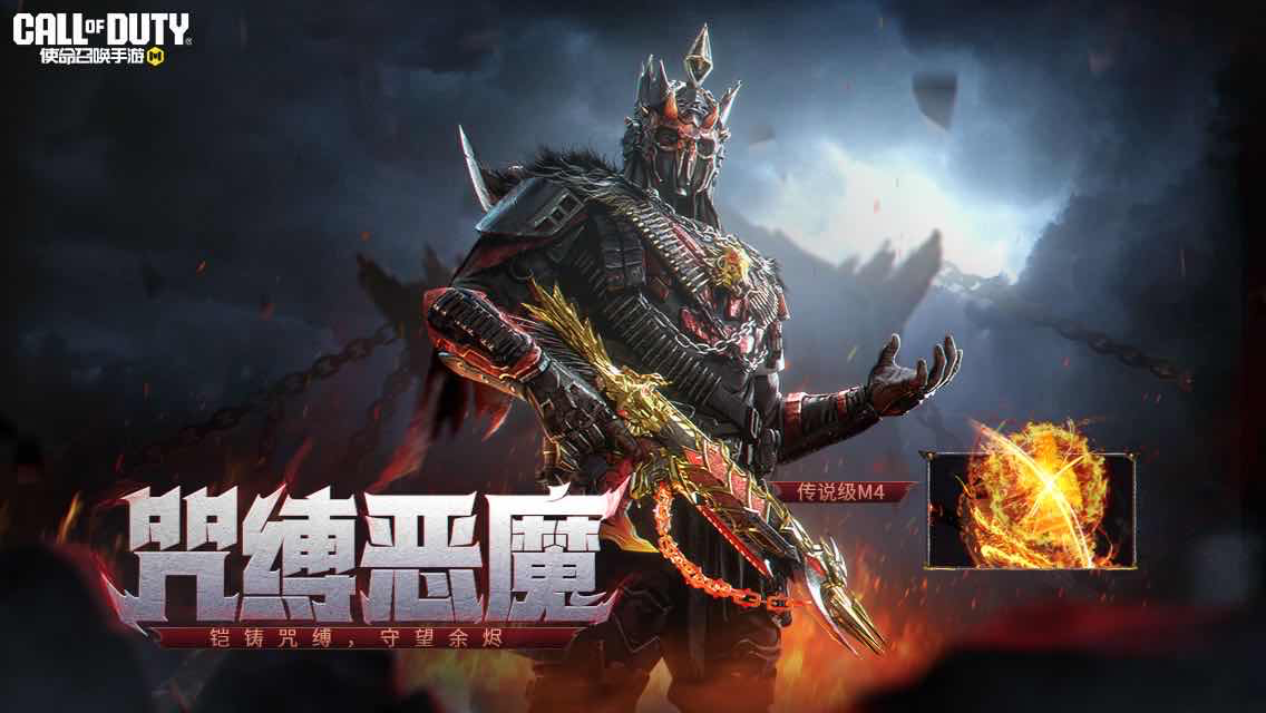 使命召唤手游传说级武器M4-咒缚恶魔返场,武器身上有烈焰燃烧,枪身上缠绕着粗重锁链,武器拥有独特的消灭特效,当M4-咒缚恶魔消灭敌人的瞬间,黑色的锁链瞬间将对方的身体紧紧缠绕,锁链裹挟的高温也将其化为灰烬。随着M4-咒缚恶魔消灭2/4/6名敌人后,枪身内部的能量也被逐步唤醒,枪身上的能量会逐渐变得通红,新武器将会在10月31日正式上线。