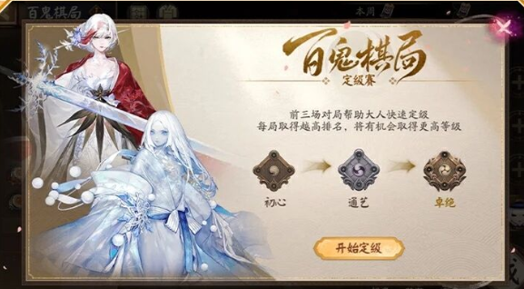 在全新百鬼棋局上线后,玩家还可在商店中兑换全新棋盘皮肤,并在百鬼棋局界面中更换已有的棋盘。并且,游戏还会上线“快速定级赛”功能,玩家前三局的比赛将被视为定级赛,在定级赛中可以快速提升分数,以便大家更好的匹配实力相当的对手。