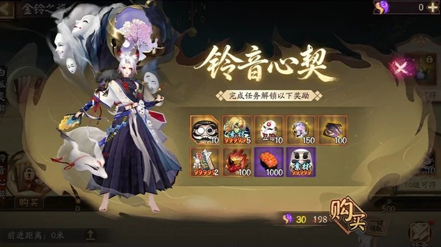 玩家也可购买“铃音心契”来解锁御行达摩(碎片)、驱梦假面(五倍)、经验手札·大、逢魔之魂灯额外奖励。