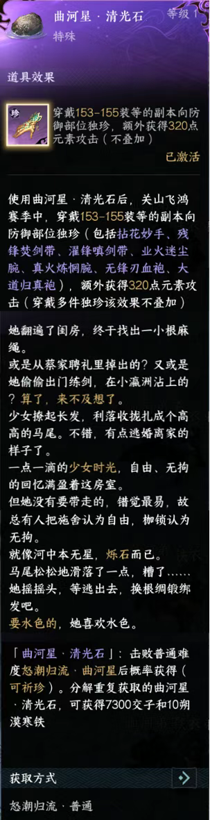 更有机会获得独珍装备“曲河星·清光石”、“季寒修·空谷竹”、“风少微·逐光萤”、“风少微·碎星尘”等奖励!