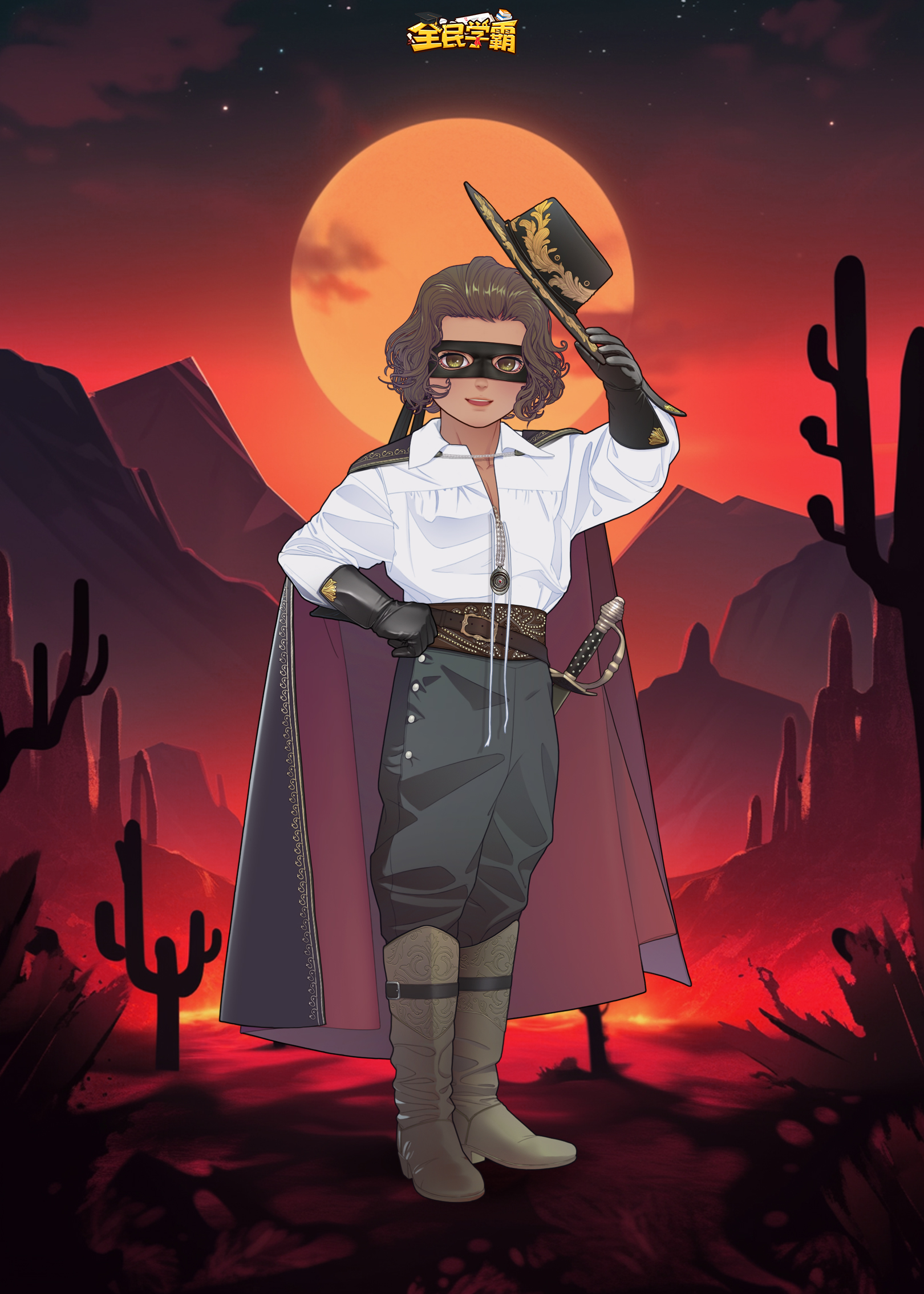 听说了吗?校园里来了一位神秘嘉宾——“黑夜侠客”阿里巴巴!他穿着黑红色披风,戴着面具,佩戴一柄刺剑,四处行侠仗义。