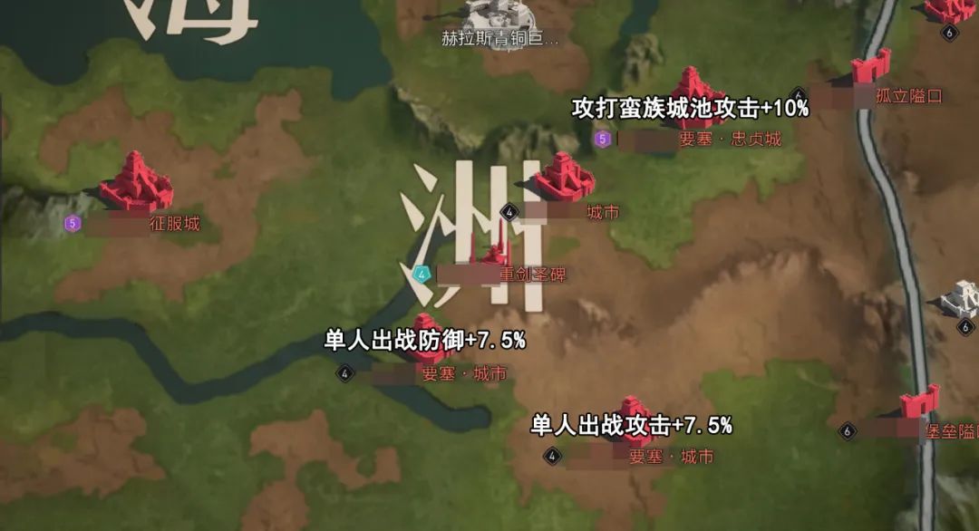 每个战区都存在一座8级要塞,可以增加全部兵种10%攻击,并且该要塞正好处于中心区门口位置,一旦占据就能取得极大地理优势。