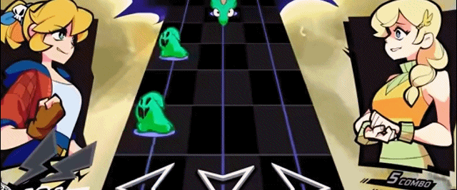 玩家将化身主角凯登丝,在充满奇幻色彩的世界中,面对从裂隙中涌出的怪物大军。游戏采用独特的“三轨道”战斗系统:敌人沿三条轨道向玩家逼近,玩家需精准匹配音乐节拍,按下对应方向键进行攻击。不同于传统音游的静态打击,本作中怪物行为模式千变万化——如鹰身女妖疾速突袭,只需一击毙命;黑色骷髅则需连续两次精准打击,且会在受击后重返轨道顶端再度袭来。玩家需兼顾节奏与策略,在音符流淌中预判敌人动向,展开一场听觉与反应的双重考验。
