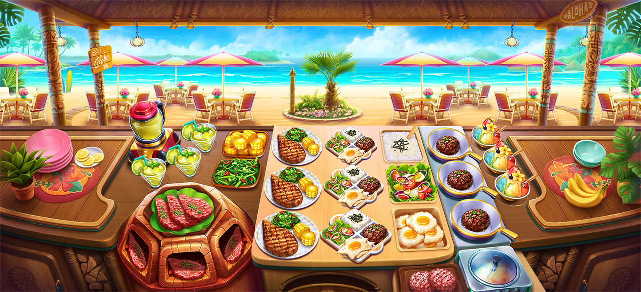 特调柠檬水、彩虹冰沙、杂烩沙拉、多汁烤肉·······这么多美食,糖糖看着口水都要流下来了