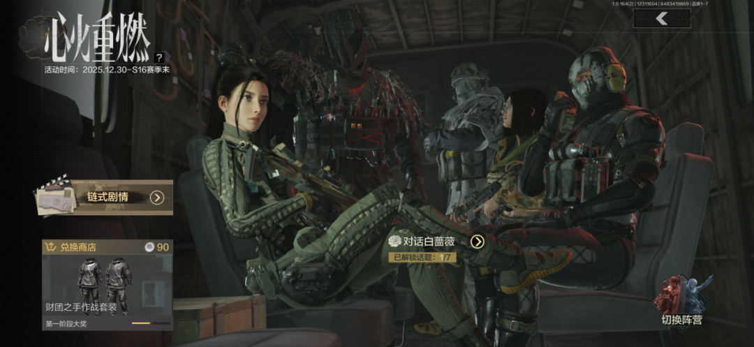 活动期间,解锁链式剧情,完成周常任务,获得蔷薇代币,兑换和平先锋作战套装财团之手作战套装财团之手·AR57和平先锋·AKM等丰厚奖励!