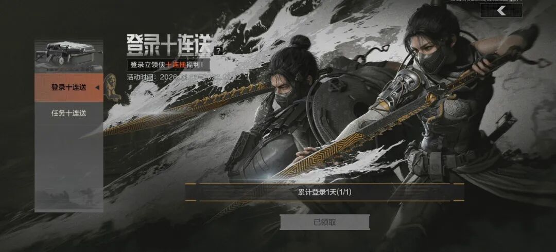 全新军需送二十连!活动期间,登录即可领取侠军需卡(赠送)*10,完成任务可再领取侠军需卡(赠送)*10,共计可获得侠军需卡(赠送)*20