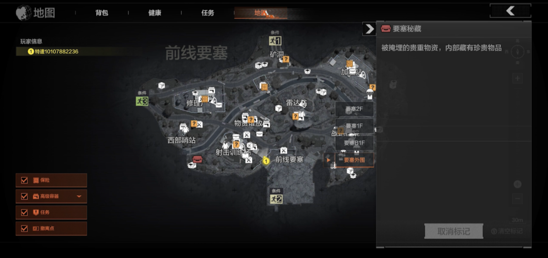 在「要塞-沙暴过境」模式中,可在保险箱内搜索获得秘藏情报道具,当小队成员共同拥有一定数量秘藏情报后可解锁要塞秘藏。解锁后可在地图查看要塞秘藏的位置,要塞秘藏必出大金!