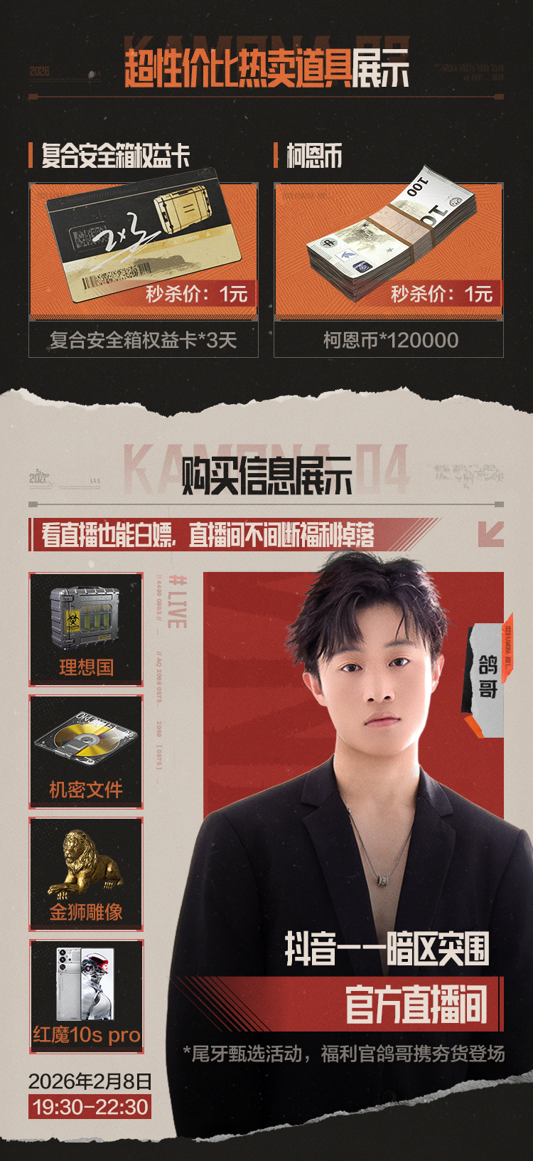 暗区突围【尾牙甄选】2月8日19:30即将开启!抖音官方直播间限时返场狂欢!