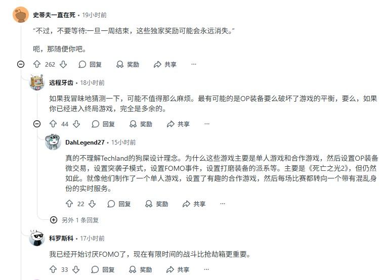 然而,这条转型之路并非一帆风顺。GameLook观察到,海外玩家对“周常任务”类设计存在明显的抵触情绪,有玩家在论坛上直言:“这感觉像是在强迫我们每天登录,失去了玩游戏的本意。”此外,连续11周的活动需要投入专门的运营、开发与客服资源,对传统单机团队是不小的负担。如果后续没有足够吸引力的付费内容接棒,前期投入可能难以回收。