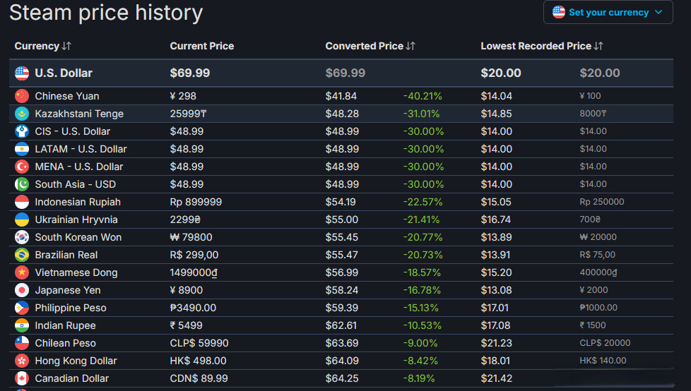 值得一提的是,《忍龙4》在Steam国区的价格是298元,是最低地区,转成为美元为41.84美元。但显然,《忍龙4》并没有吸引国内太多玩家的关注。