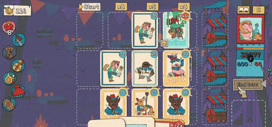 为了描述这伟大史诗,朕要求画师用充满中世纪风情的风格来如实记录。尔等将置身于王权与战争的恢弘舞台,切身实际体验朕那无比壮观的统治生涯!你看朕的画师画的多么惟妙惟肖,受伤后的卡牌一瘸一拐的身影,以及知道它们自己大难临头时的瑟瑟发抖,都体现的“栩栩如生”。