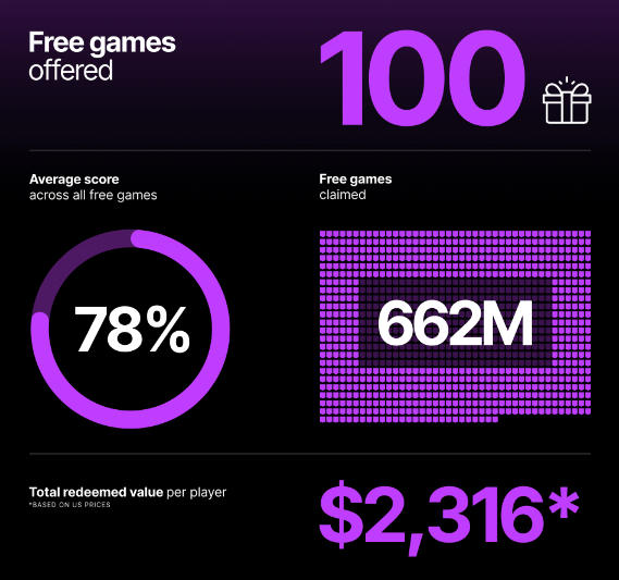 毫无疑问,免费游戏计划在吸引玩家方面是成功的。Allison指出,去年赠送的大约100款游戏中,有70%因此创下了PC端的峰值同时在线用户纪录。由于《霍格沃茨之遗》的赠送活动,Epic游戏商店在12月的月活跃用户数达到了7800万的历史新高。Allison说,“那个月我们新增了近600万从未见过的新用户”。