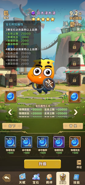 打造出宝石后可以到英雄界面为角色镶嵌。宝石共分为攻击类和防御类两个大类: