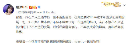 对于瞳夕来说,这可能只是一个调侃,但是作为LPL官方女解说,在节目中说这样的话显然是考虑不周了,此话不仅会得罪DK甚至LCK粉丝,严格意义来讲会给LPL抹黑!为此,瞳夕也是对于自己这番不严谨的话公开道歉,承认确实是开了不该开的玩笑,以后自己将会谨言慎行!